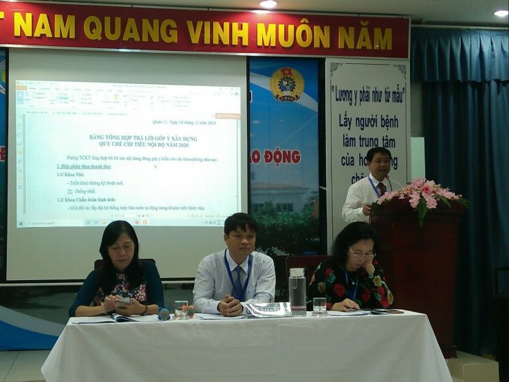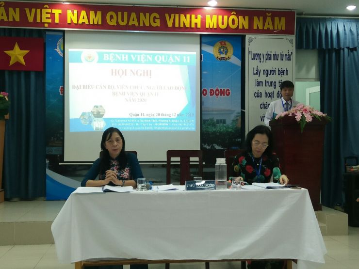 Hội nghị đã bầu Chủ tọa đoàn và Thư ký đoàn điều hành Hội nghị. Thay mặt Chủ tọa đoàn, BsCKII. Phạm Quốc Dũng trình bày báo cáo tóm tắt kết quả thực hiện nhiệm vụ năm 2019, phương hướng nhiệm vụ năm 2020; liên tục chương trình, Bà Khưu Thoại Hoa - Ủy viên Ban chấp hành Công đoàn triển khai Kế hoạch phòng chống tham nhũng, thực hiện Quy chế dân chủ cơ sở, Quy chế văn hóa công sở năm 2020.