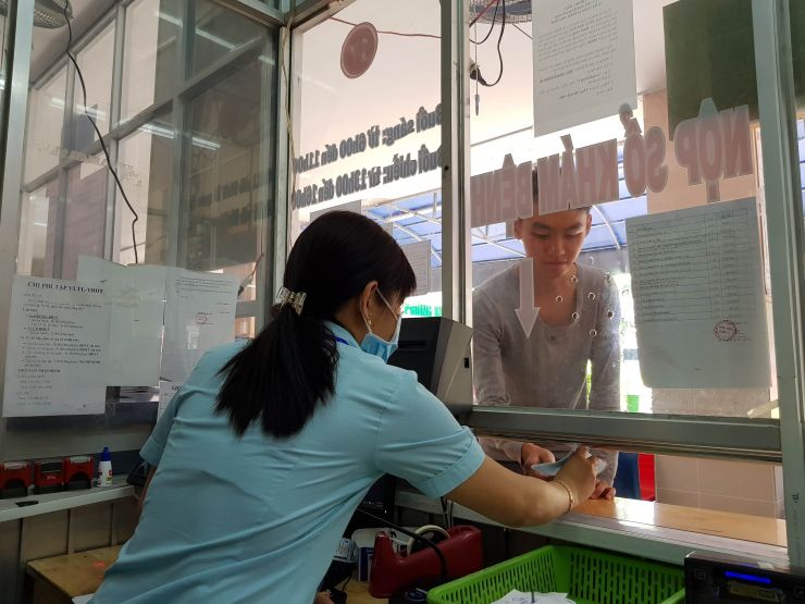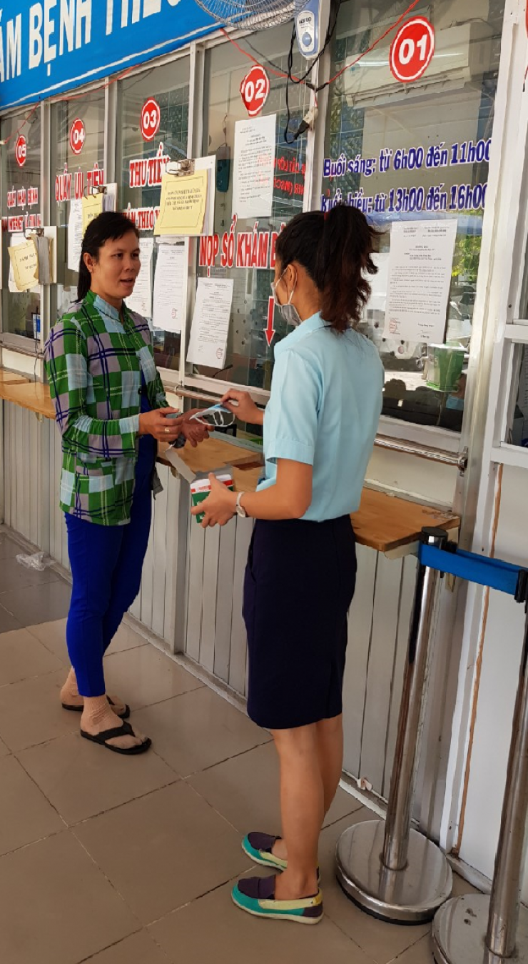 Phát khẩu trang cho bệnh nhân đến khám bệnh