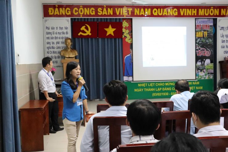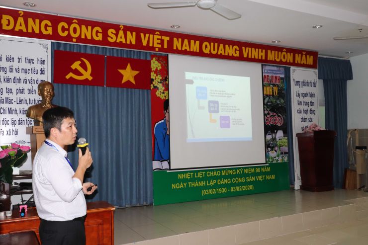 Tham dự lớp tập huấn có BsCKI. Nguyễn Thị Thu Vân - Phó Giám đốc bệnh viện, BsCKl. Nguyễn Thanh Tâm - Phụ trách Phòng Kế hoạch tổng hợp, cũng là báo cáo viên của lớp tập huấn cùng với sự tham dự của 100% nhân viên y tế.