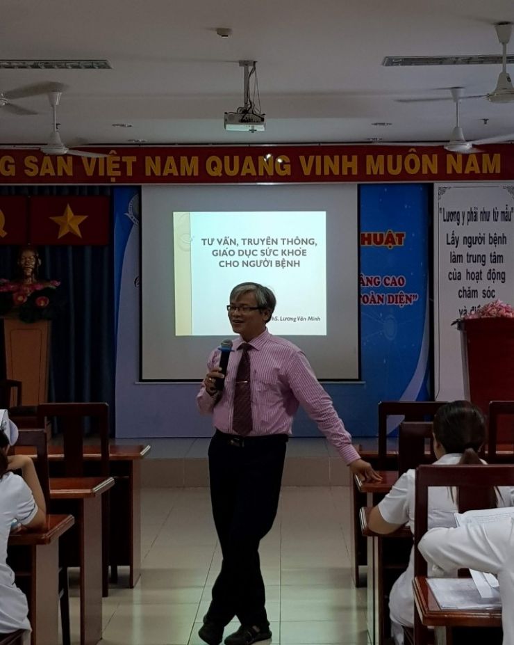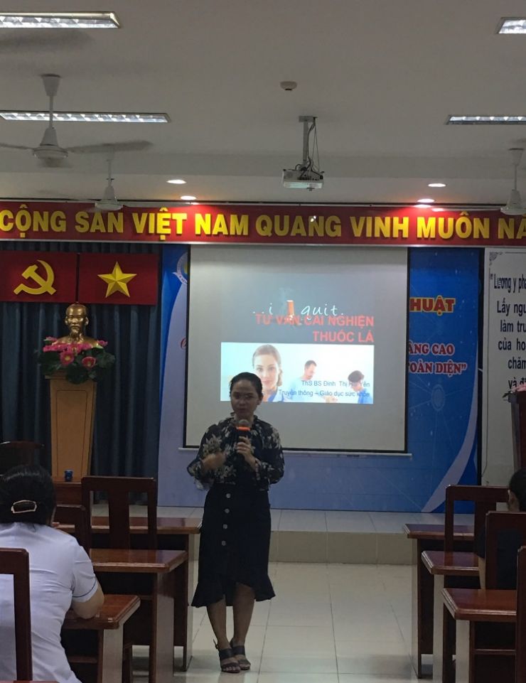 Báo cáo viên trình bày và thảo luận về TT - GDSK và Tư vấn cai nghiện thuốc lá