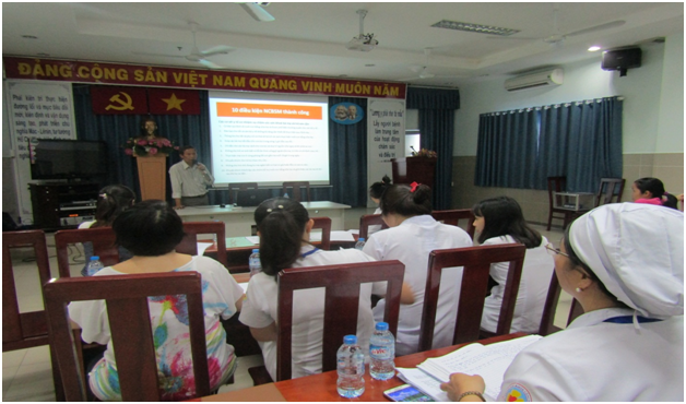 Trong buổi học đầu tiên, Bs CK1. Nguyễn Ngọc Thông, Nguyên Giám đốc Trung tâm CSSKSS TPHCM đã trình bày nội dung một số quy định về công tác nuôi con bằng sữa mẹ tại các cơ sở y tế, các hướng dẫn chuyên môn chăm sóc thiết yếu bà mẹ, trẻ sơ sinh trong và sau đẻ, cũng như quy định về kinh doanh và sử dụng sản phẩm dinh dưỡng dành cho trẻ nhỏ, bình bú và vú ngậm nhân tạo. Thông qua buổi học, Bác sĩ cũng nhấn mạnh vai trò của cơ sở y tế và nhân viên y tế là rất quan trọng trong việc khuyến khích , động viên các bà mẹ nuôi con bằng sữa mẹ.