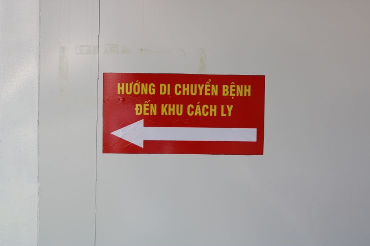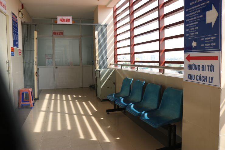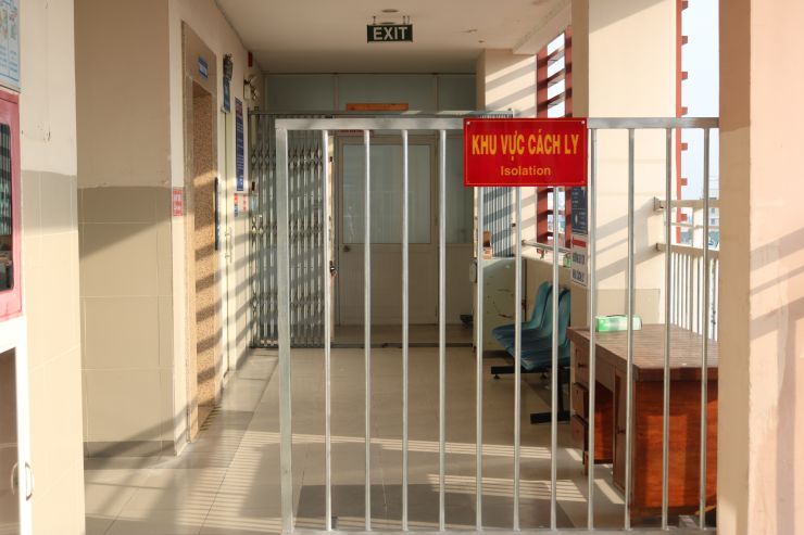 Bảng cấm khu vực cách ly được dựng sát phía ngoài cửa, cách khá xa phòng điều trị bệnh nhân còn lại của Khoa Nội tổng hợp