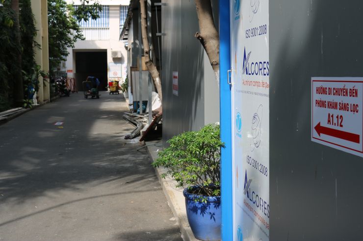 Đồng thời, bệnh viện bố trí các bảng hướng dẫn hướng di chuyển cho bệnh nhân nghi nhiễm nCoV từ ngoài cổng vào trong.