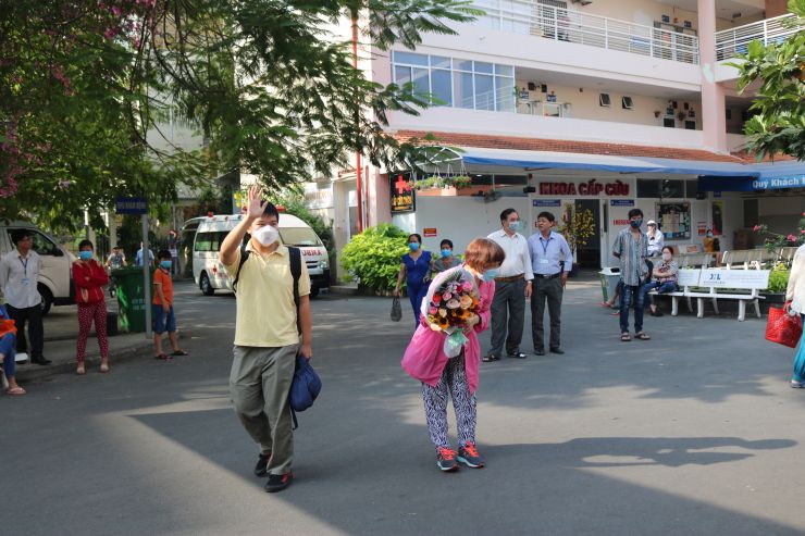 Nhận bó hoa tươi thắm từ Ban Giám đốc Bệnh viện Quận 11, bà Hu XiaoLian chia sẻ: "Tôi rất vui và xúc động khi được ra viện vì đã cách ly giám sát trong một thời gian dài. Tôi rất trân trọng cám ơn các y bác sĩ Bệnh viện Quận 11 đã quan tâm chăm sóc rất tận tình, chu đáo, động viên tinh thần cho tôi trong quá trình nằm viện cách ly những ngày qua. Các y, bác sĩ của bệnh viện và của Việt Nam rất giỏi và giàu nhân ái".