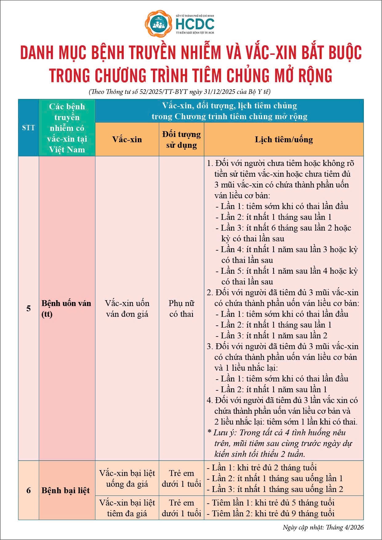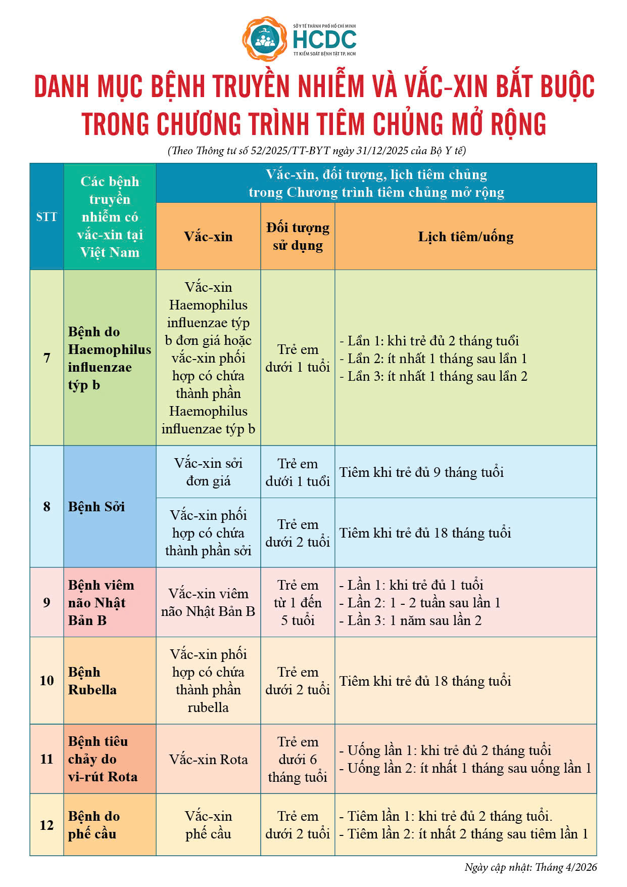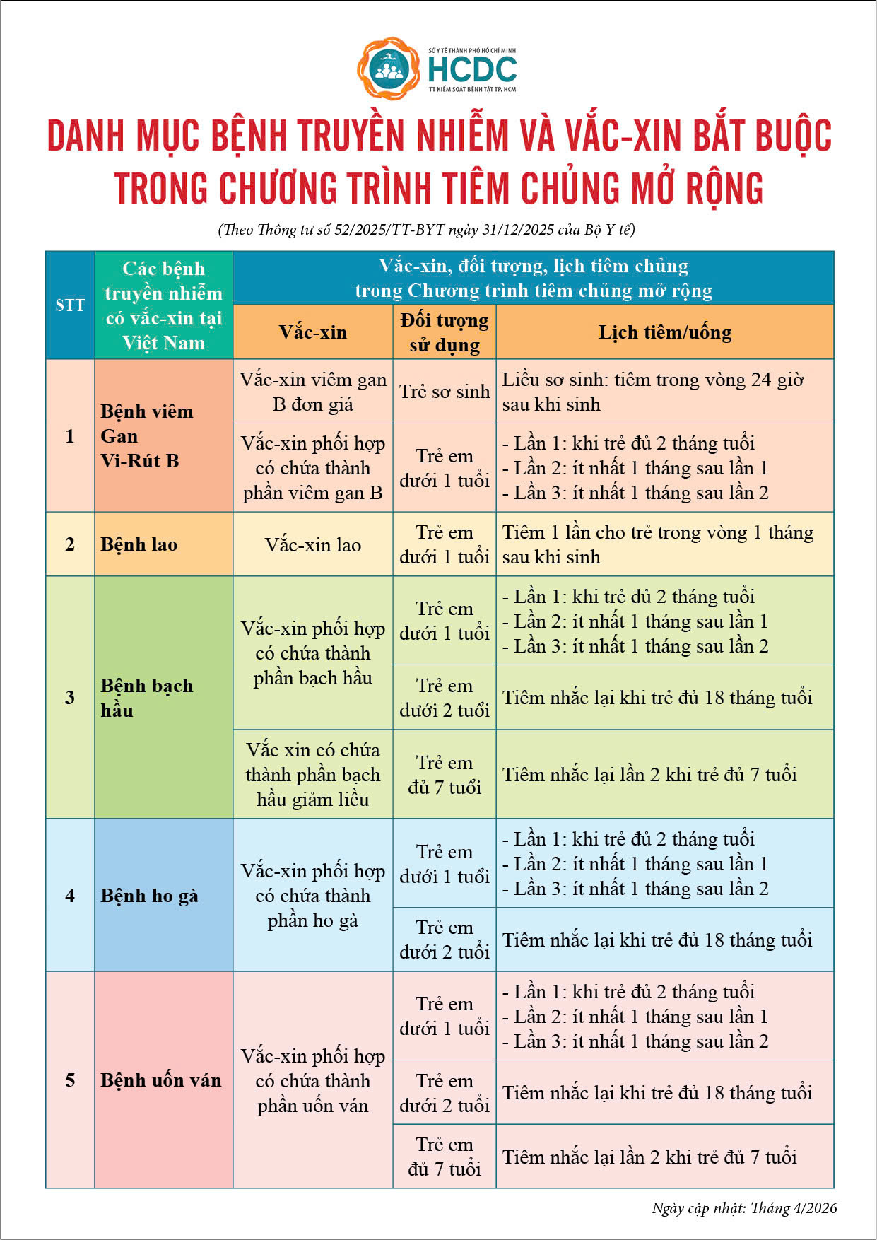 1. Danh mục bệnh truyền nhiễm và vắc xin bắt buộc trong chương trình Tiêm chủng mở rộng