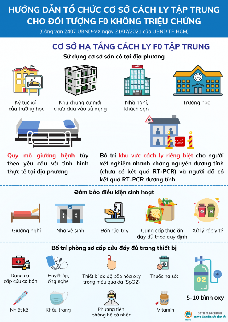 - Mỗi quận huyện, thành phố Thủ Đức thành lập “Tổ phản ứng nhanh” (bác sĩ, điều dưỡng, công an) để kịp thời hỗ trợ các tình huống khẩn cấp tại cơ sở cách ly tập trung.
