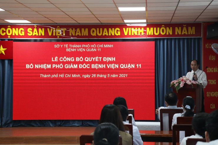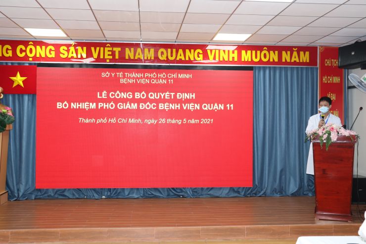 Tại buổi lễ, PGS.TS.BS.Tăng Chí Thượng đã trao Quyết định số 193/QĐ-SNV ngày 14/5/2021 của Sở Nội vụ TPHCM bổ nhiệm Phó Giám đốc Bệnh viện Quận 11 (hạng II) trực thuộc Sở Y tế đối với Ông Lê Đức Nhã - Thạc sỹ Kế toán, Trưởng Phòng Tài chính kế toán Bệnh viện Quận 11, thời gian giữ chức vụ là 05 năm, Quyết định có hiệu lực kể từ ngày 14/5/2021.
