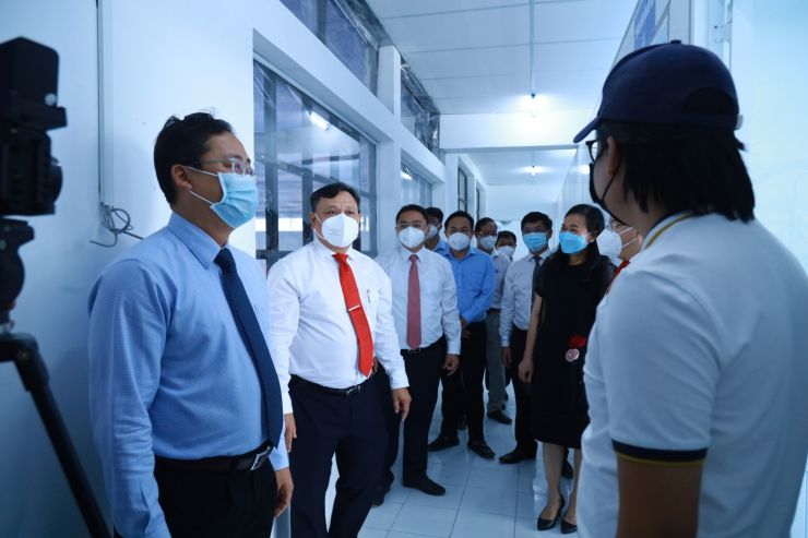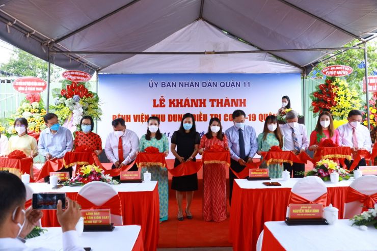 Tại buổi lễ, các đồng chí lãnh đạo đã thực hiện nghi thức cắt băng khánh thành Bệnh viện thu dung, điều trị Covid-19 Quận 11 và tham quan các phòng chức năng, khu vực tiếp nhận bệnh, khu vực điều trị bệnh nhân nặng, phòng trực, khu vực giám sát và trung tâm điều hành Bệnh viện…