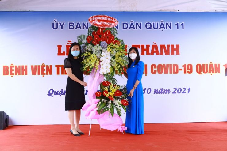 BsCKI. Nguyễn Thị Thu Vân, Phó Giám đốc Bệnh viện Quận 11, kiêm Giám đốc Bệnh viện thu dung, điều trị Covid-19 Quận 11, cho biết: “Với công suất hiện tại của bệnh viện thu dung, sẽ có thể tiếp nhận điều trị cho bệnh nhân trong quận phù hợp với định hướng của ngành y tế thành phố, dự kiến đến 30/10 bệnh viện Quận 11 phục hồi công năng thành Bệnh viện xanh tiếp nhận điều trị bệnh nhân không nhiễm Covid-19”. Đồng chí cũng bày tỏ sự trân trọng cảm ơn đối với sự quan tâm của lãnh đạo Quận 11, lãnh đạo ngành y tế luôn quan tâm, chỉ đạo sâu sát hoạt động phòng chống dịch bệnh để bệnh viện hoàn thành tốt hoạt động phòng chống dịch và khám chữa bệnh cho người dân.