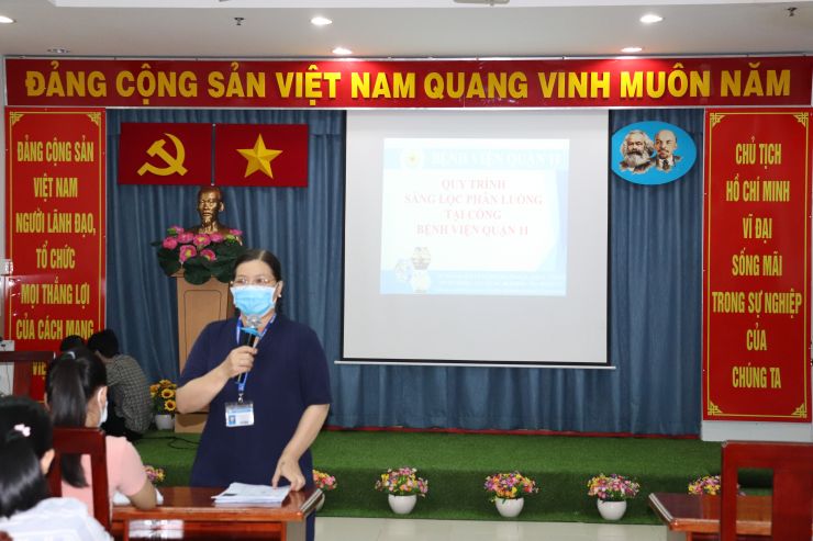 Sáng ngày 08/9/2020 Biện viện tổ chức tập huấn quy trình sàng lọc phân luồng tại cổng Bệnh viện: