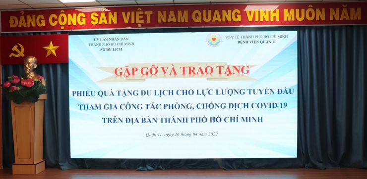 Chiều ngày 26/4/2022, Sở Du lịch Thành phố Hồ Chí Minh gặp gỡ và trao tặng cho Bệnh viện Quận 11 phiếu quà tặng du lịch cho lực lượng tuyến đầu tham gia công tác phòng, chống dịch Covid-19 trên địa bàn Thành phố Hồ Chí Minh.