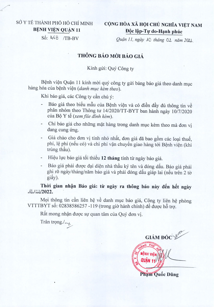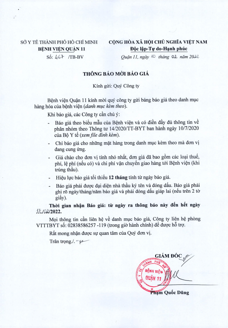 Thông báo mời báo giá