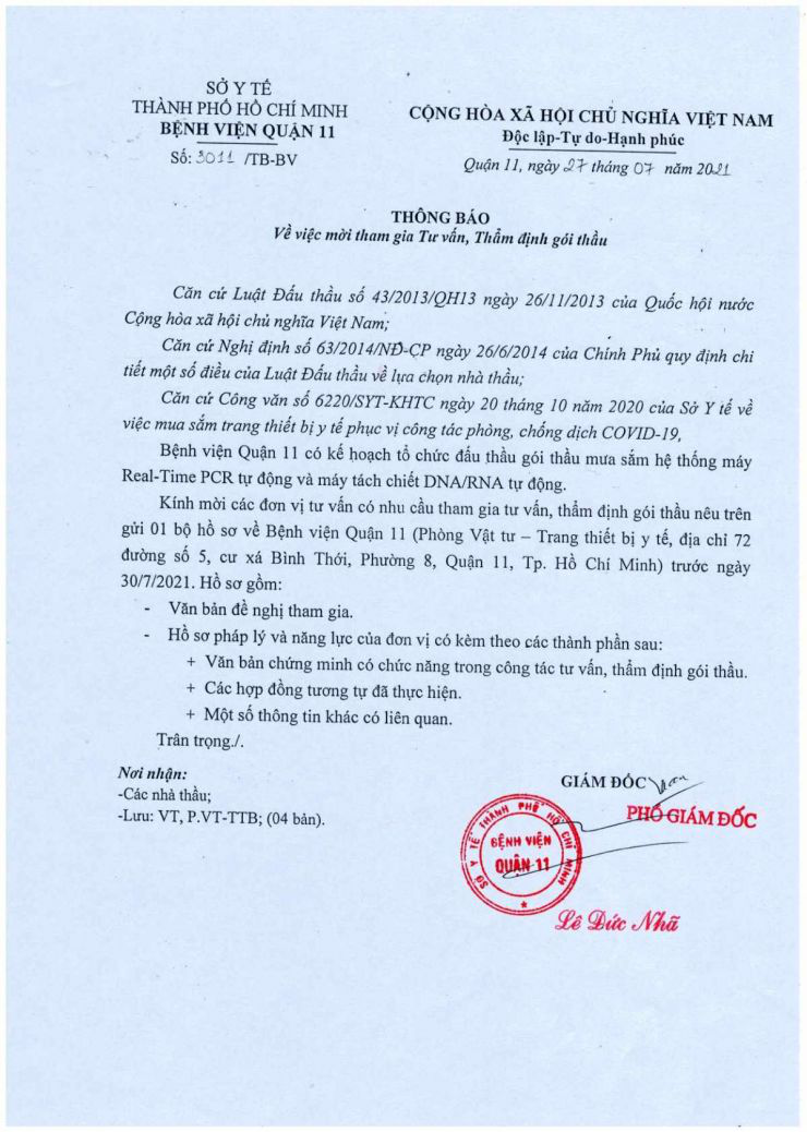 Thông Báo Mời Tham Gia Tư Vấn Gói Thầu Mua Sắm Hệ Thống Real-Time PCR