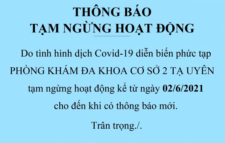 Thông báo tạm ngừng hoạt động tại phòng khám đa khoa cơ sở 2 Tạ Uyên