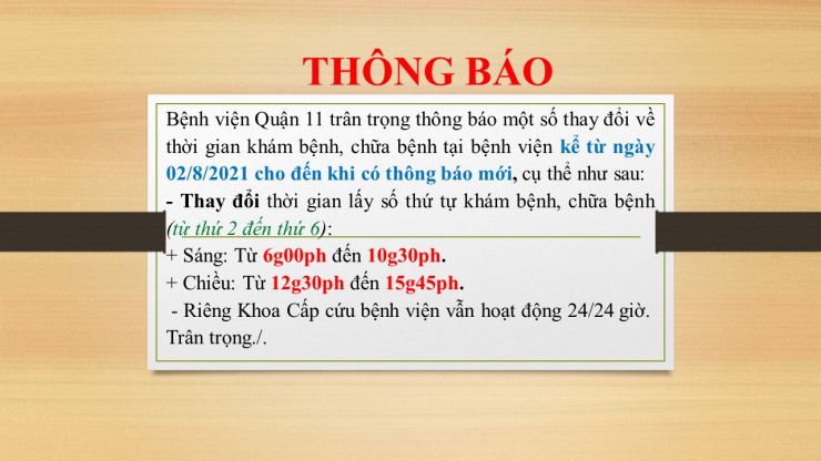 Thông báo thay đổi thời gian lấy số thứ tự khám bệnh, chữa bệnh từ ngày 02/8/2021