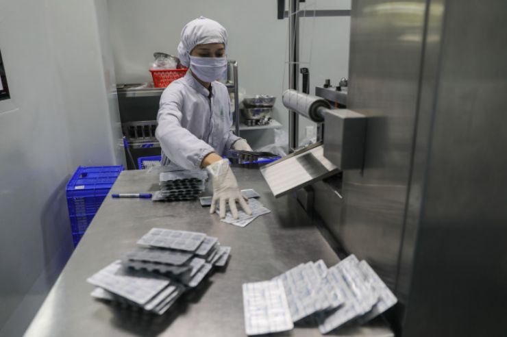 Thuốc molnupiravir sản xuất tại Công ty Boston Việt Nam (Bình Dương) ngày 23/2. Ảnh: Quỳnh Trần