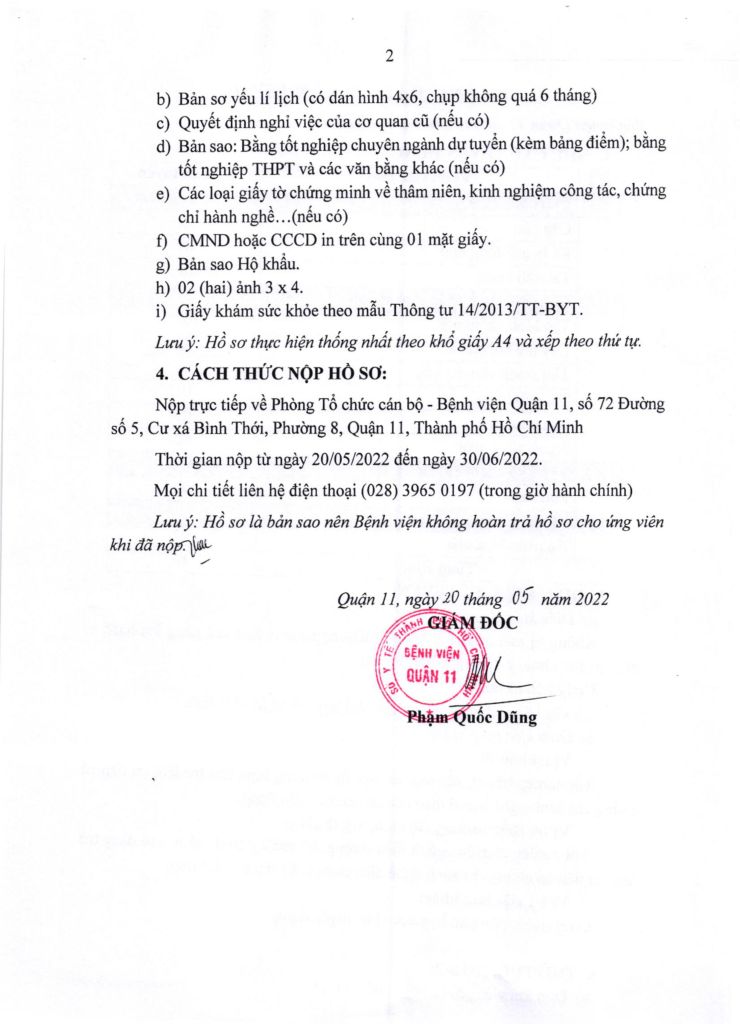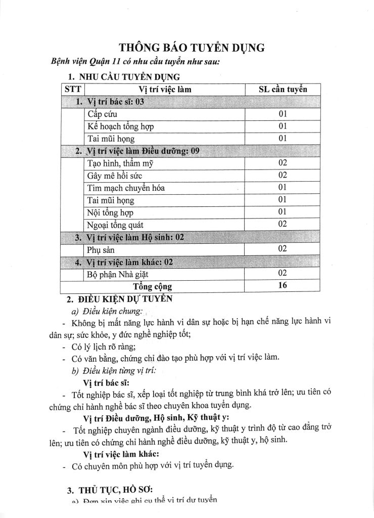 Thông báo về danh sách thí sinh đủ điều kiện tham dự vòng 2 đã thực hiện đóng phí xét tuyển kỳ xét tuyển viên chức Bệnh viện Quận 11 năm 2025